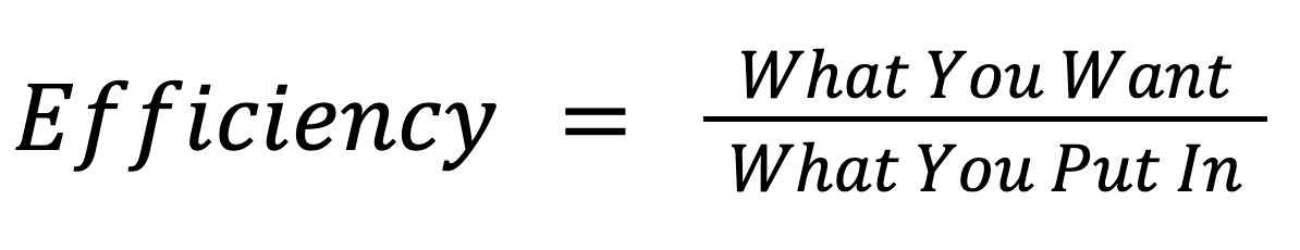 Dr. Hage had this incredible way of distilling complex equations or systems down to digestible and easy to remember principles. While on a long walk this weekend my mind started wandering back to some of Dr. Hage’s lessons and the concept of system efficiency came to mind. Here is how we were taught to understand efficiency.
